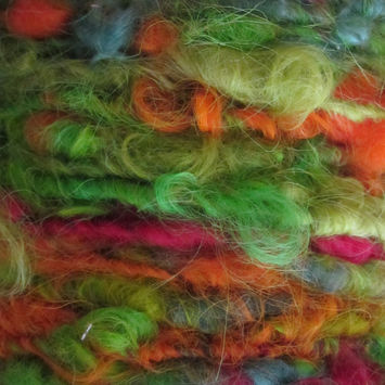 My hand woven rugs are a mix of fibres from my own herd of Angora goats & flock of sheep. I weave Mohair fleece, Greyfaced Dartmoor fleece, & Swiss Valais cross fleece in a combination of loose fleece curls, hand spun yarn & rovings to create an eclectic mix of fibres which makes a lovely chunky rug.